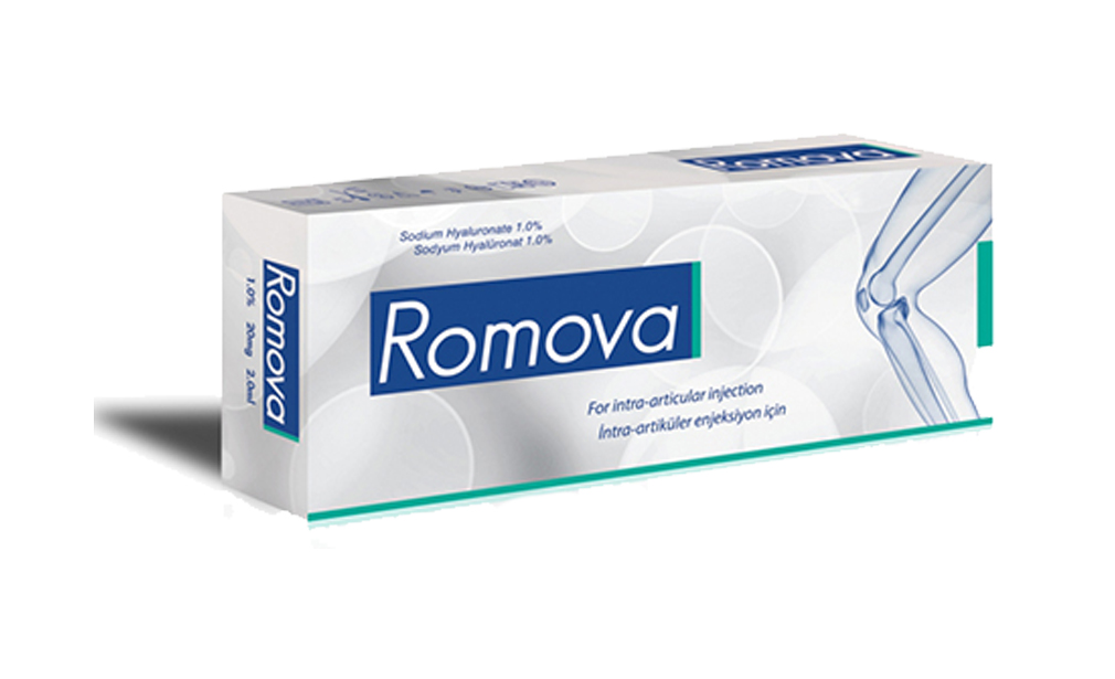 Romova / Romova Plus / Romova Single, steril, apirojen, berrak, non-enflamatuar, fizyolojik salin çözeltisi içinde yüksek oranda saflaştırılmış, yüksek moleküler ağırlıklı bir sodyum hiyalüronat çözeltisidir. Yüksek saflıktaki sodyum hiyalüronat fermentasyon yoluyla bakterilerden elde edilmiştir.
